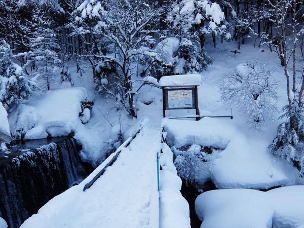 渋の湯の奥の登山口からすでに雪がしっかりとついていました。
