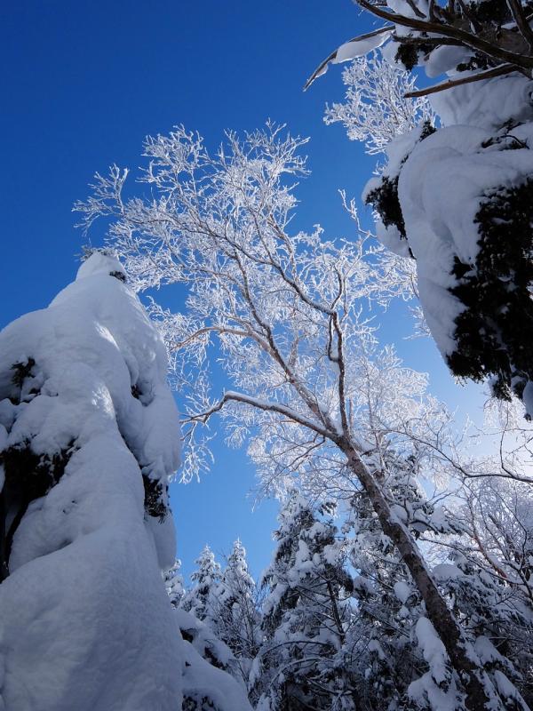 木々の隙間から見える青空と雪のコントラストが素晴らしかったです。