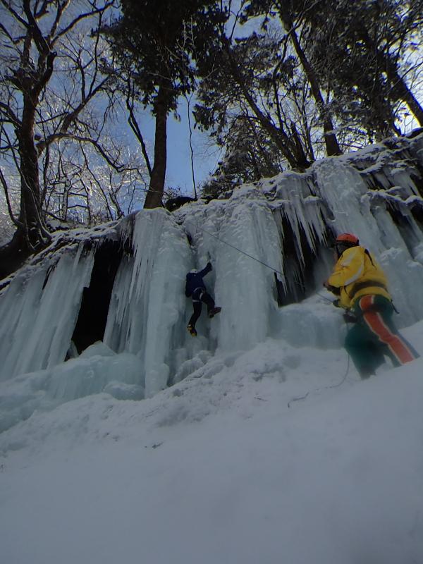 奥にある大きな氷柱はまだ登れません。2月の中ごろになれば大分良くなるかと思います。