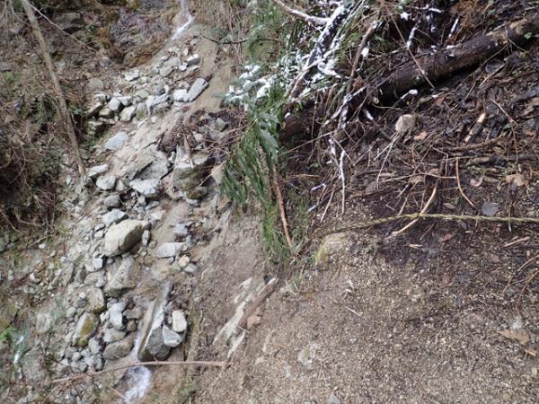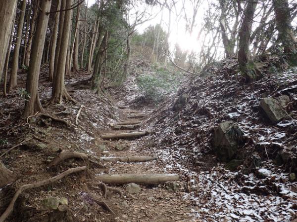 かなりの急坂で登りに使っても下りに使ってもしんどそうな道でした。