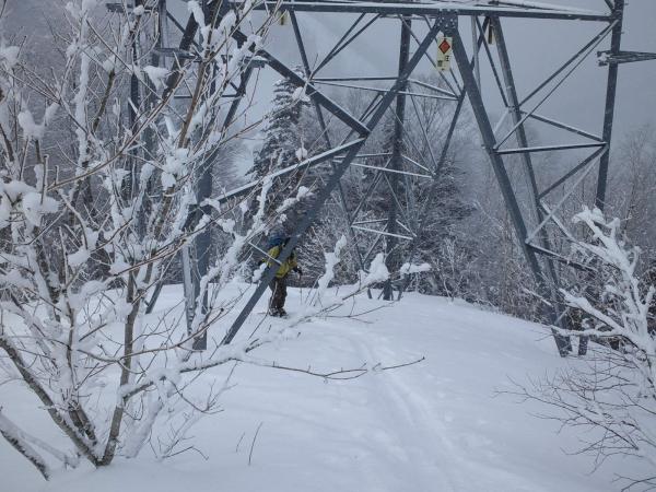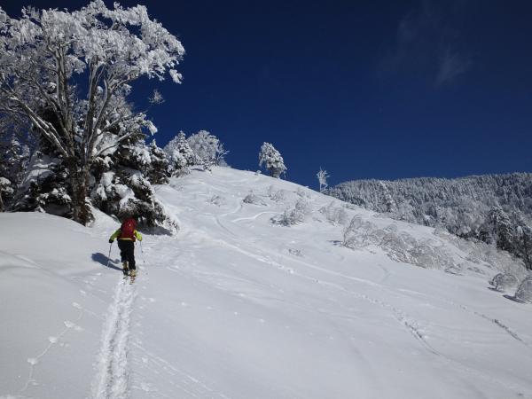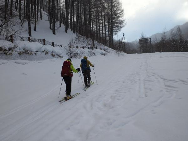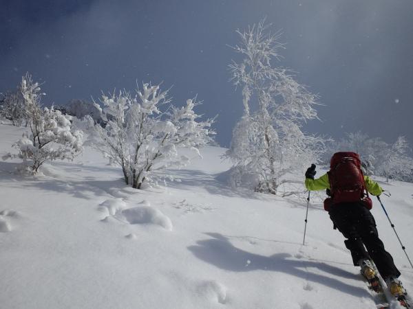 アプローチから中間部までは、あまり良い状態の雪ではありませんでしたが