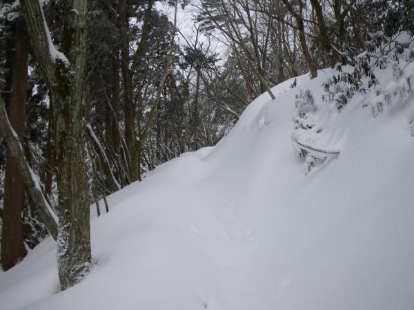 ⑫ワサビ峠~御殿山間は少しだが、トレースがなければ雪が深い