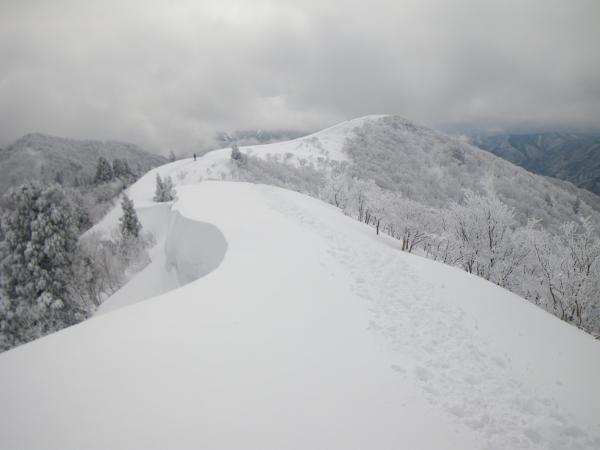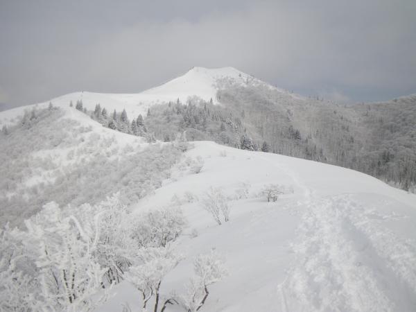 分岐からはようやく先行者のトレースがあり、ワカン・スノーシューで楽に登頂。