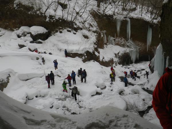 渓谷内は6本爪アイゼンでも平気ですが10本爪アイゼンの方々が多いようです。