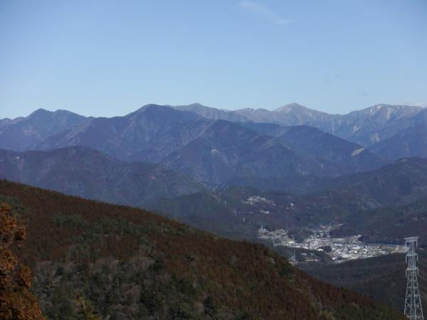 道中はほとんどスギの植林に覆われていて、開けた場所はほとんどありません。一カ所だけ、標高600m手前辺りに鉄塔があり、そこから富士山や京丸山方面がよく見渡せます。