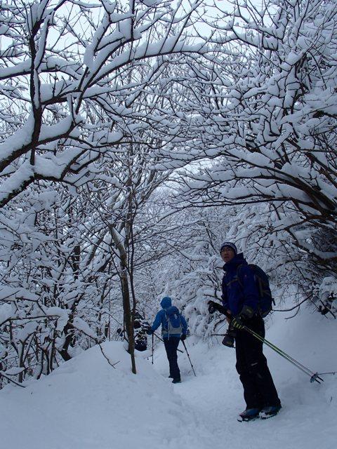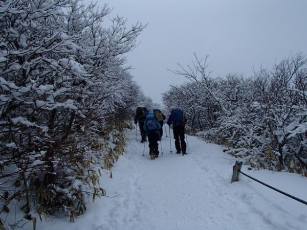 秋の無雪期にも同じコースを歩きましたが、その際はもっと強風で、