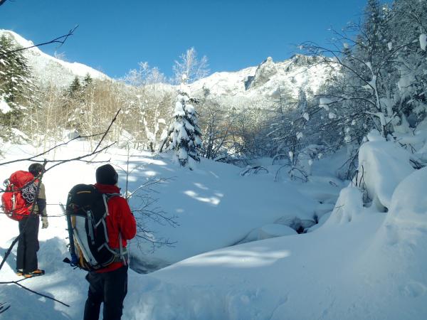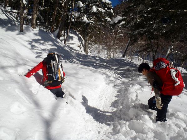 - 美濃戸口~赤岳鉱泉 : 危険箇所はなし。トレースがあるので明瞭。