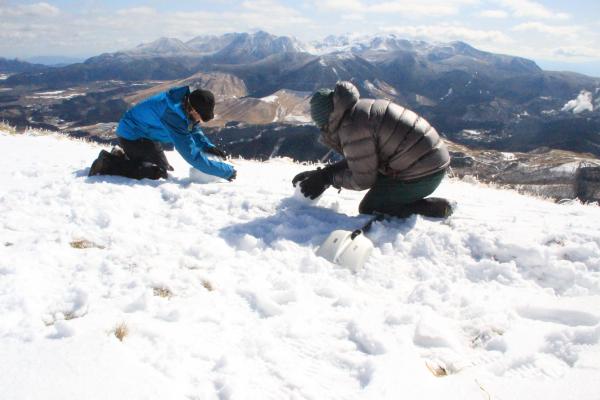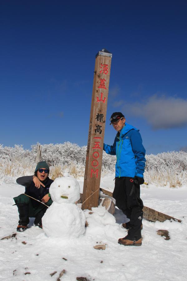 山頂では、岡山山岳部 お得意のフリータイムは 雪だるま作成