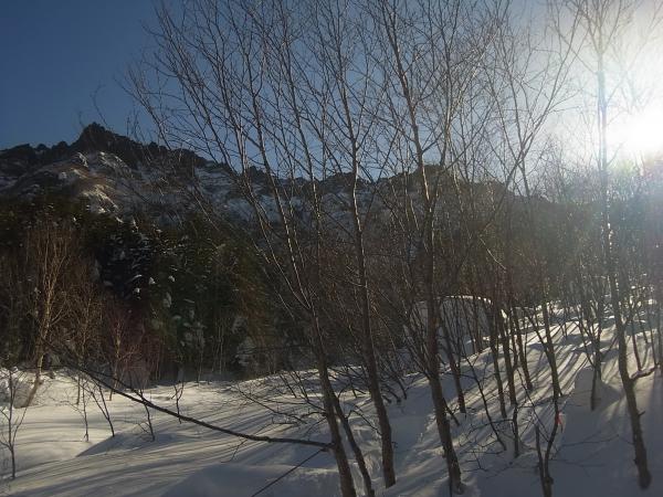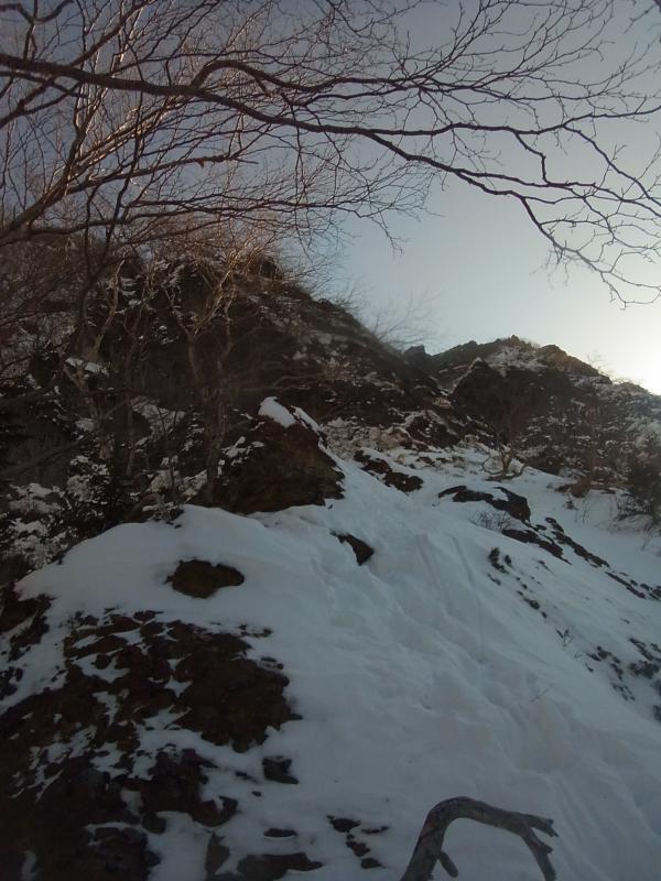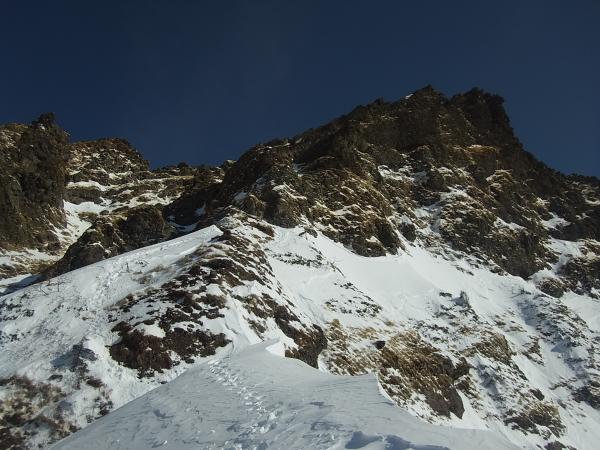石尊稜は、下部岩壁と上部岩壁での簡単なクライミングや雪壁、雪稜など
