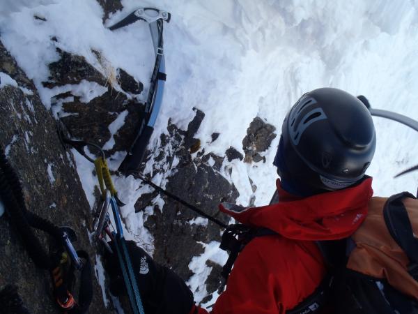 - 正面壁は岩の露出が多くバイルが効かないところも多くあった。