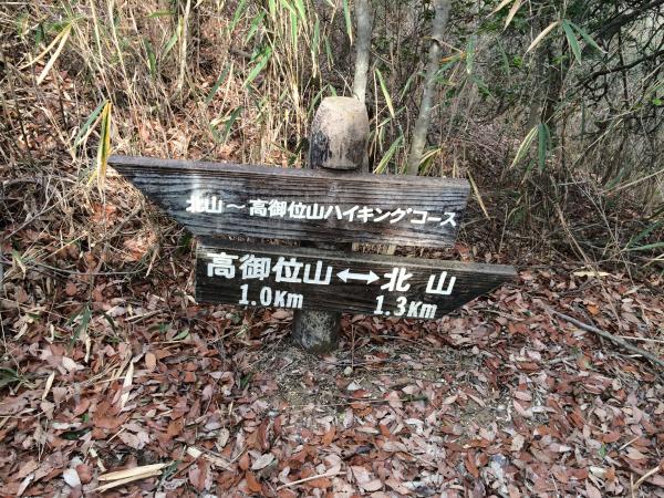 - 辻登山口~太閤岩(15)~分岐(15)~高御位山山頂(30)~桶居山分岐(25)~桶居山山頂(65)~分岐(30)~白髭神社(10)