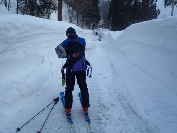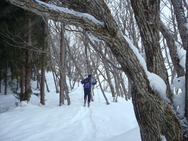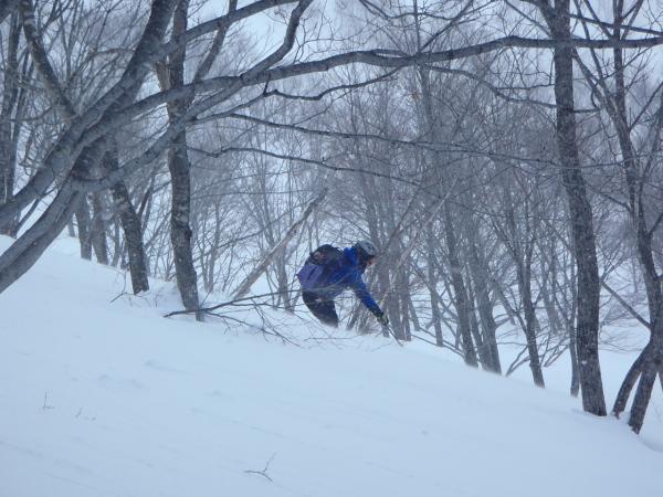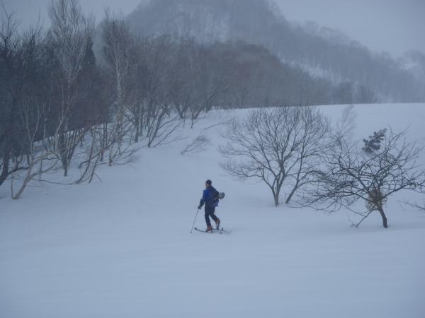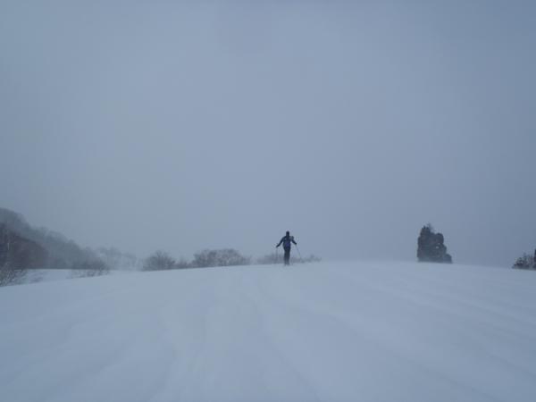 牧場跡まで滑ると、風もやみ、そこからは林道を安全に帰りました。