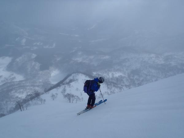 ダイレクト尾根を登りだすとかなりの強風が吹き、視界も悪くなりました。
