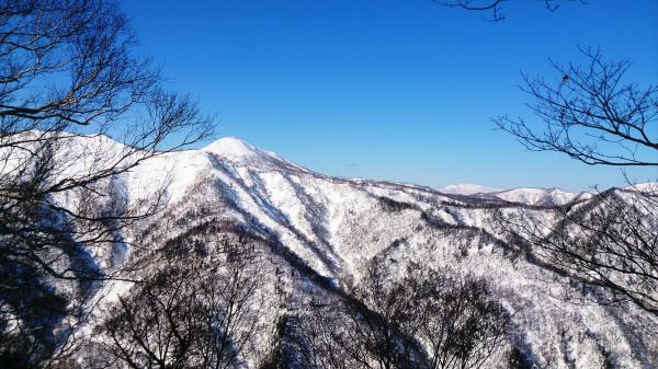 それにも関わらず無木立の白い斜面が広範囲に渡って広がり、下界から望むその姿は低山とは思えないほどの迫力があります。