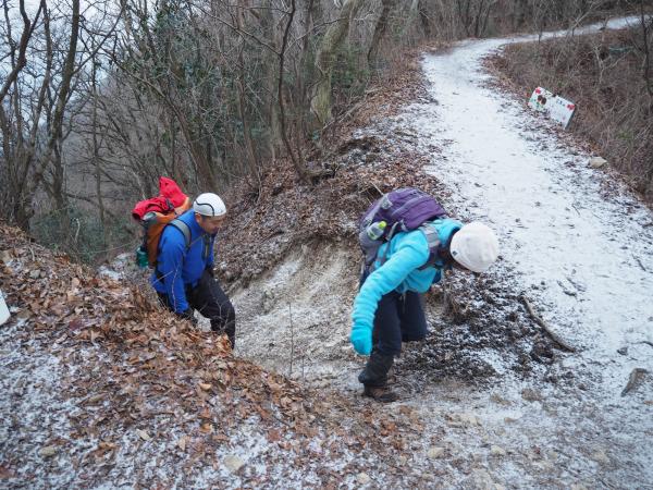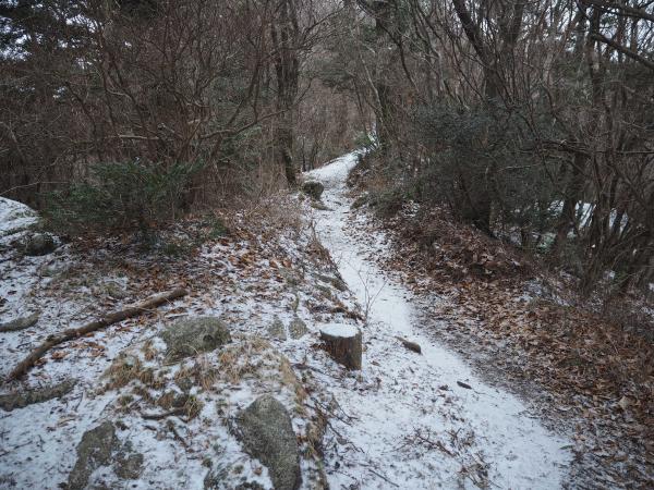 - 稜線に出る直前の急な上りの登山道が凍っていて苦戦しました。