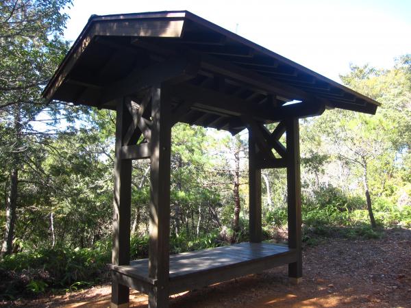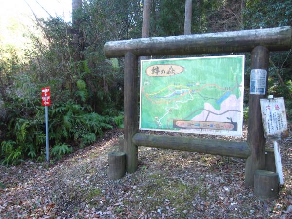 - サンナリーナ駐車場10分絆の森入口15分作業小屋1分小滝15分三本桧30分展望台15分作業小屋20分駐車場