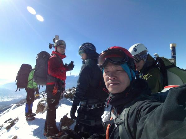 地蔵尾根を上がった辺りで日が当り、風も弱いのであっという間に赤岳登頂しました。