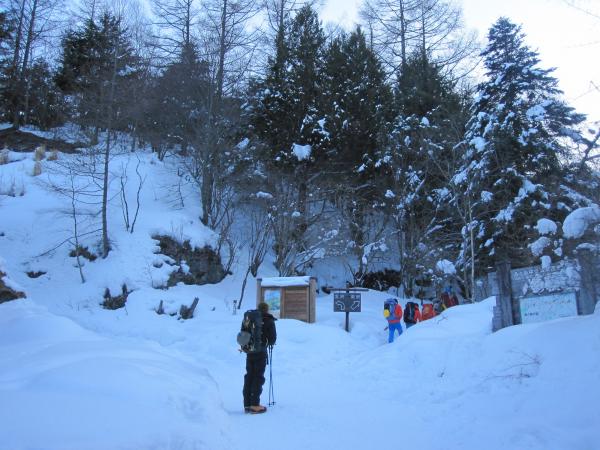 初日は南沢大滝・小滝のアイスクライミング、2日目に阿弥陀岳北陵の予定でしたが、天気が良いのは初日だけという天気予報だったので、初日に阿弥陀岳北陵に登って、2日目は下山という予定になりました。