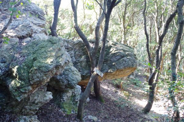 お昼の場所に選んだところは仁崎峠に下る尾根上の台地で日当たりも良く平な場所でゆっくりできました。
