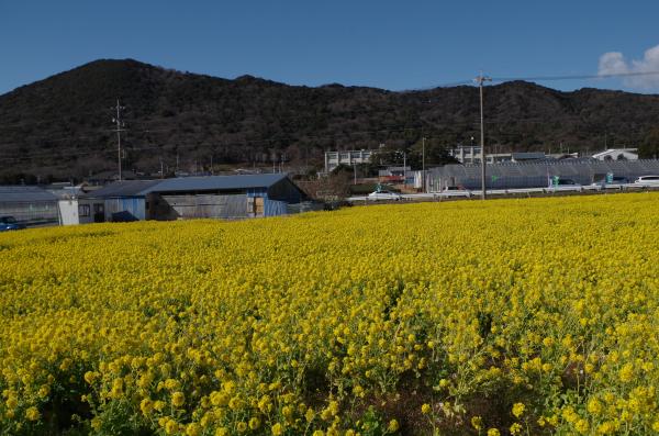 渥美半島は温暖な気候で、メロンの産地でもあります。この時期は菜の花が咲き誇る一面黄色の畑があちこちにあり観光の目玉になっています。3月くらいまで楽しめるので運がいいと桜も咲き、菜の花とのコラボが楽しめることもあるようです。