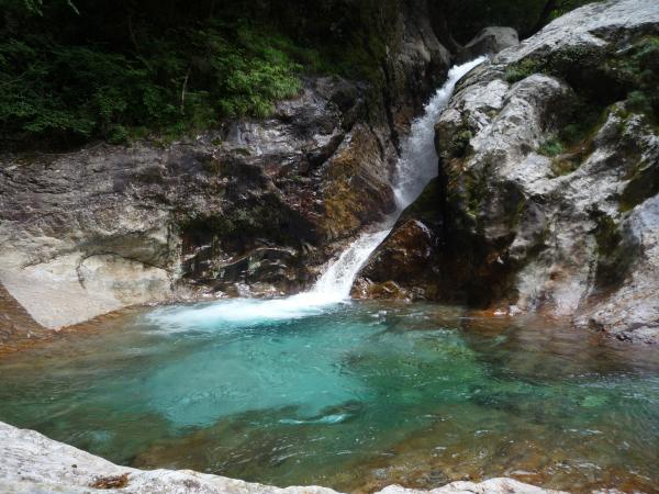- 林道入り口ゲート(55分)→ 稲荷川展望台(20分)→ 洞門岩(40分)→ 雲竜渓谷入り口(40分)→ 雲竜瀑(30分)→ 雲竜渓谷入り口(75分)→林道ゲート入り口
