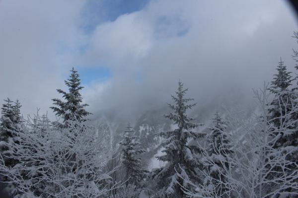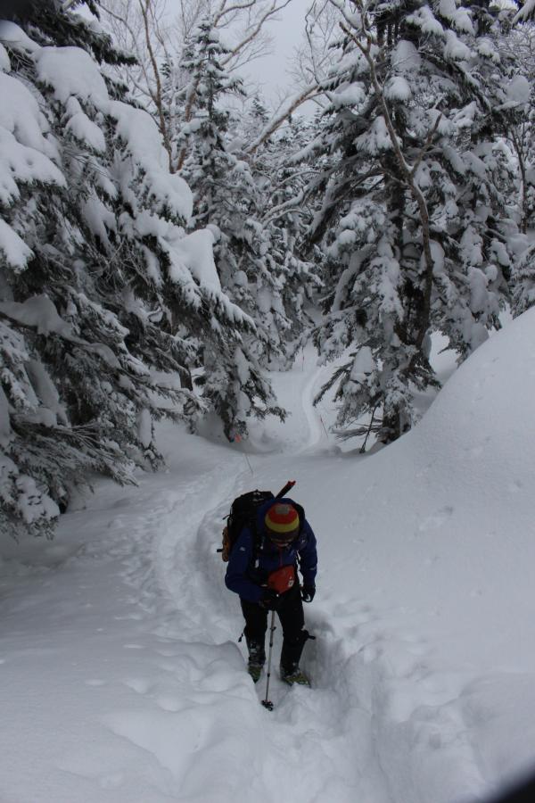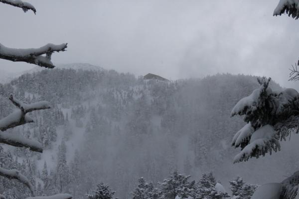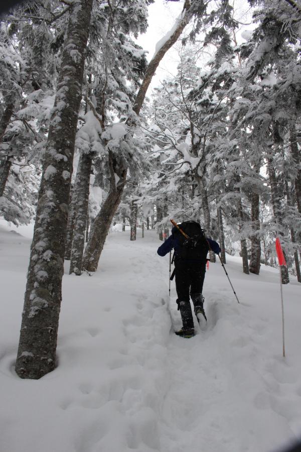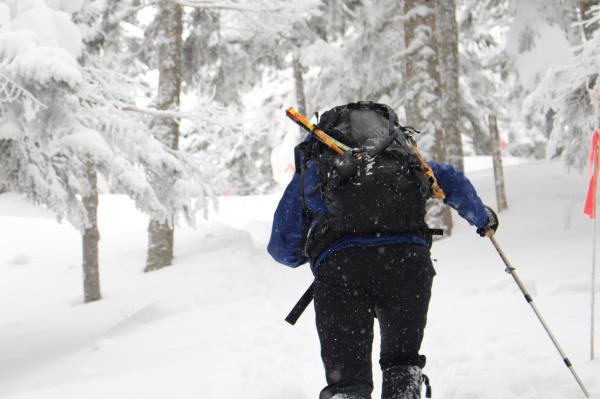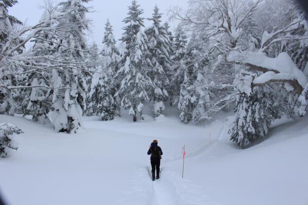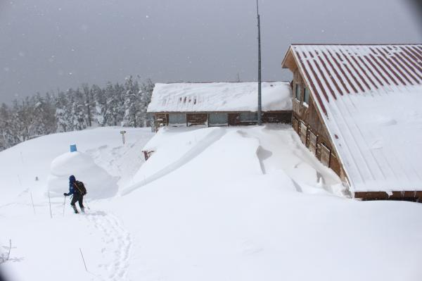 ロープウェーの駅から山荘まではしっかりとしたトレースがあった為、ワカンやスノーシューは必要ありませんでした。アイゼンも使いませんでした。
