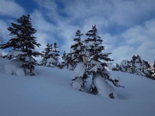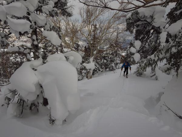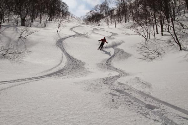 特に良かったのが箙岳の北に在る沢の滑降で、斜度、雪質、全てがBerry Goodで超快適だった。