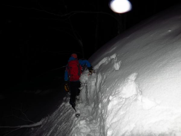 急な斜面では雪崩注意。