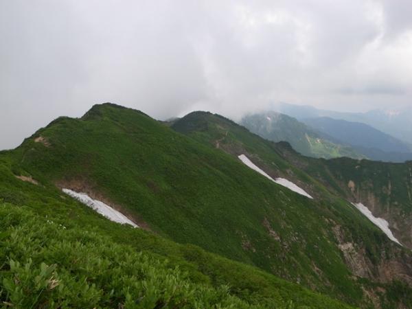 別山から南竜まで所々崩壊地形があります。多くは安全な面を巻いていますが、一か所ザレた斜面があります。一旦、2020mの沢まで下り2080mまで登り返します。トンビ岩コースの上部には雪渓が残っています。登山道に入る位置を良く見定めましょう。下りは観光新道経由で別当まで問題ありません。