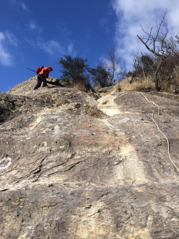 - 岩尾根を歩いていきます。風を避ける場所はありませんがその分、眺めはとても良いです。
