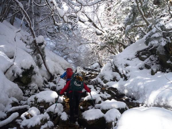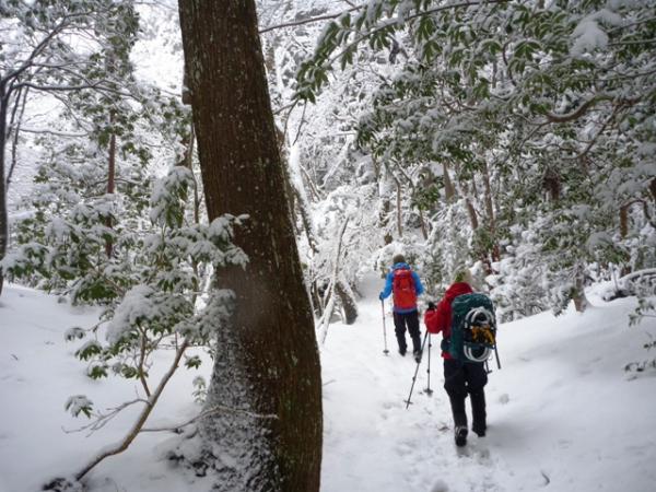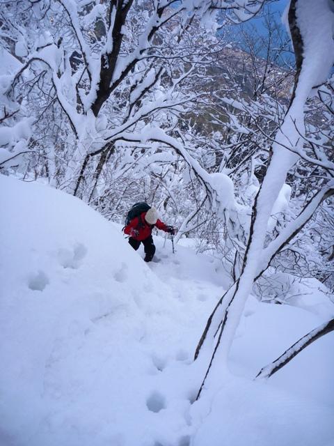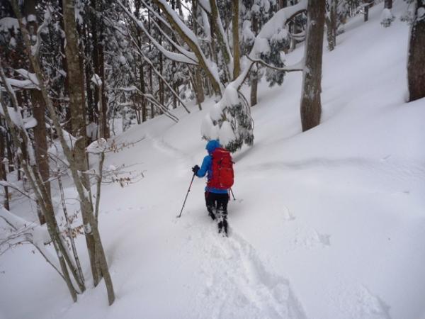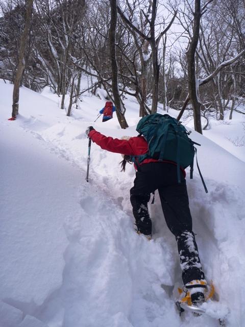 スノーシューより蹴りこめるワカンが有効だと思いました。