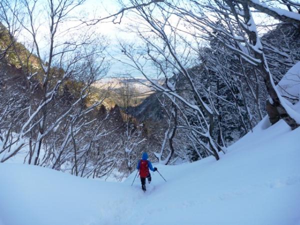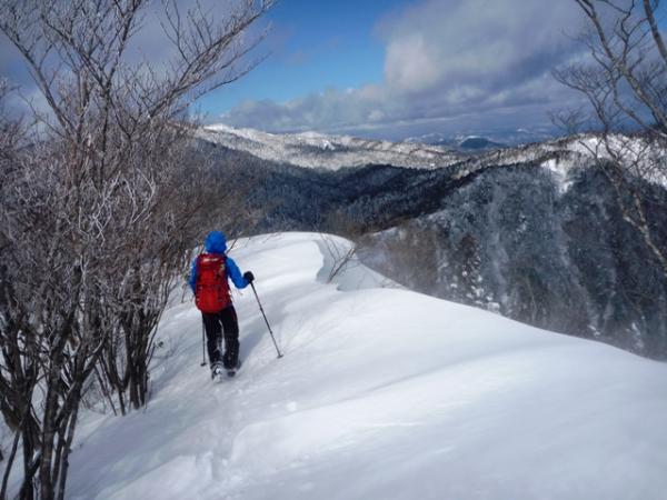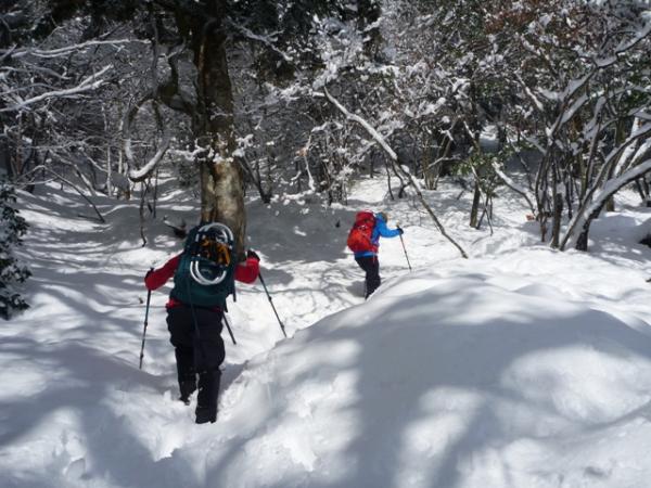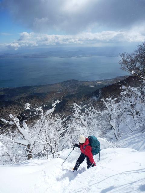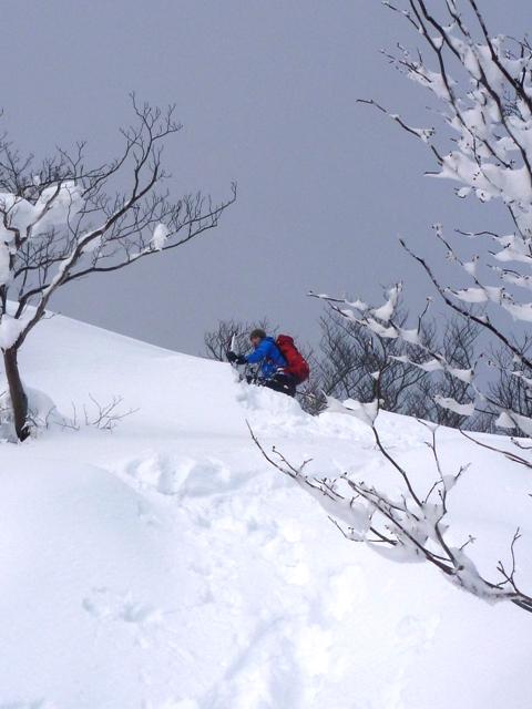 堂満岳への登りはかなりの急登で、柔らかい雪ではかなりの困難でした。