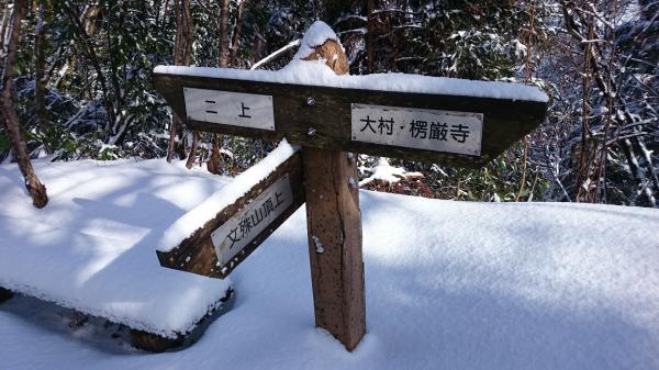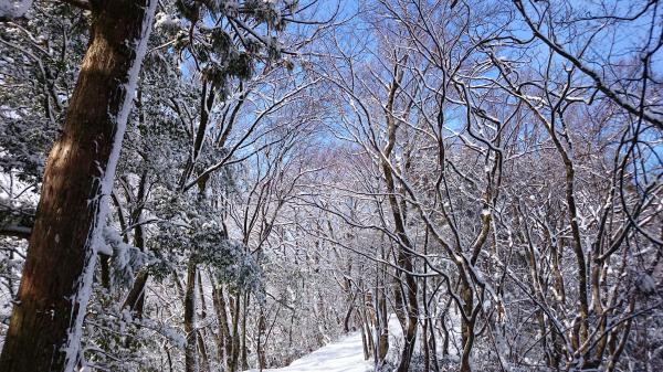 - 先日の降雪で二上コースとの分岐まではトレースがありませんでした。分岐以降は山頂までしっかりトレースがついています。降雪直後で雪が柔らかくアイゼンは使いませんでした。