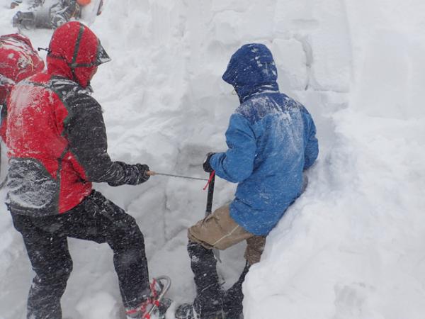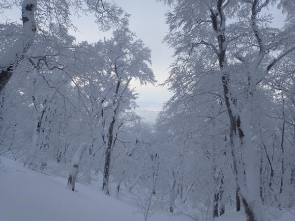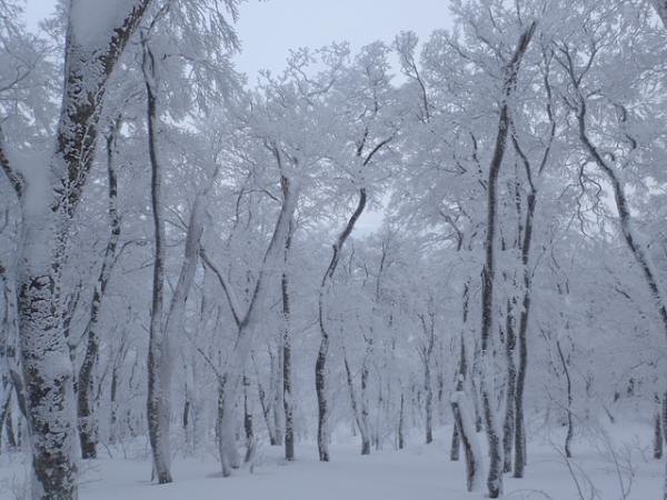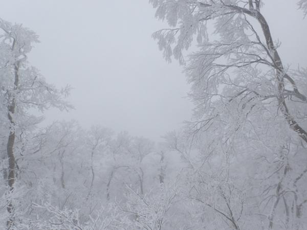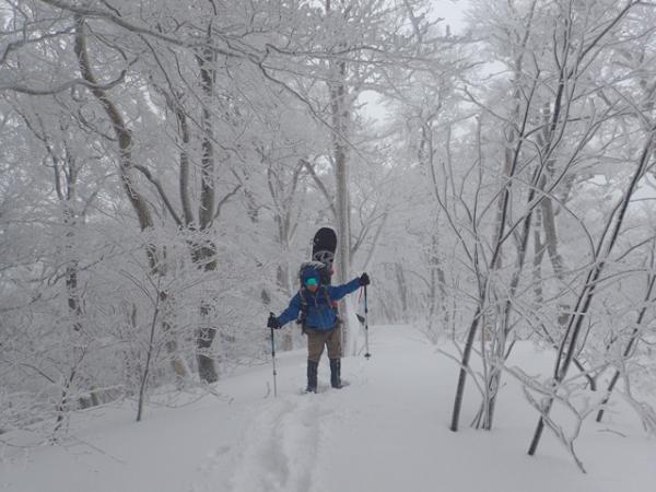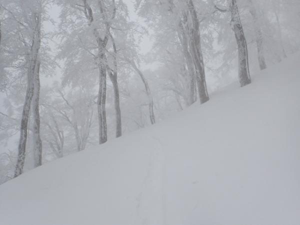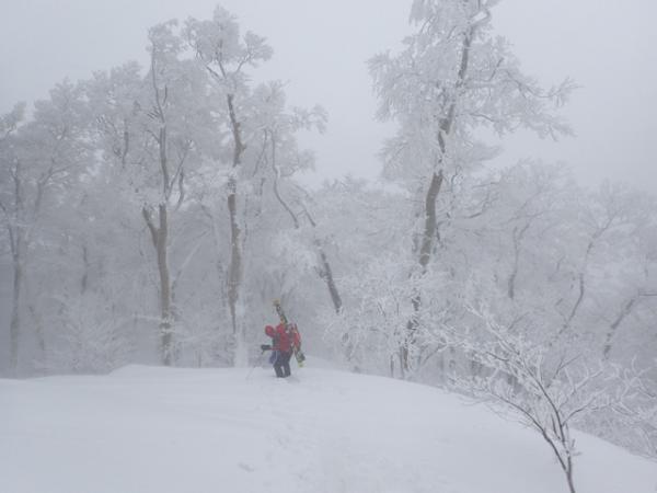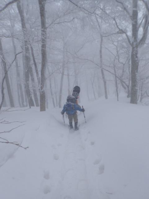 風も強く、樹林帯の中でも雪が舞い上がり道がわからなくほどでした。