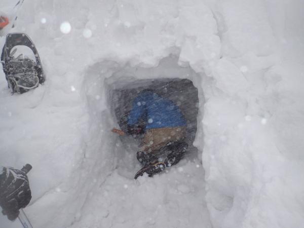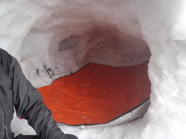 張り切りすぎでかなり大きめの雪洞を作ってしまい少し寒かったですが、快適でした。