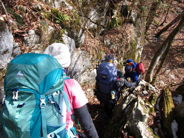 元井谷登山口からのコースは、水害後の谷を登るため、足場が悪い箇所が多いです。