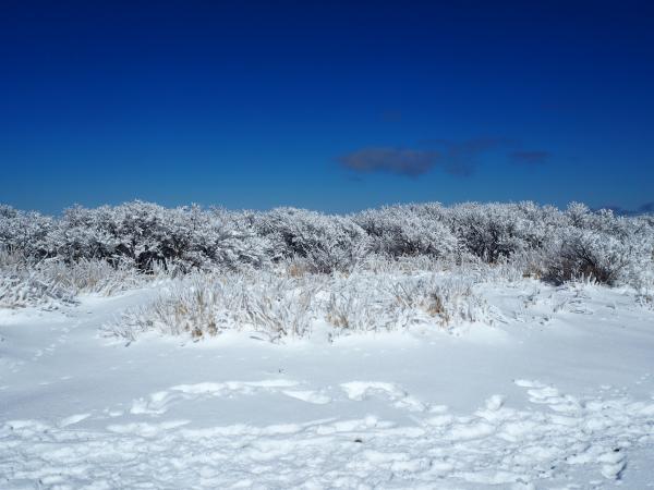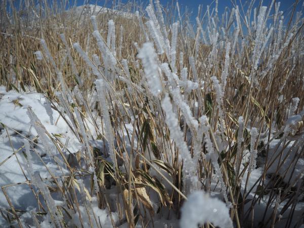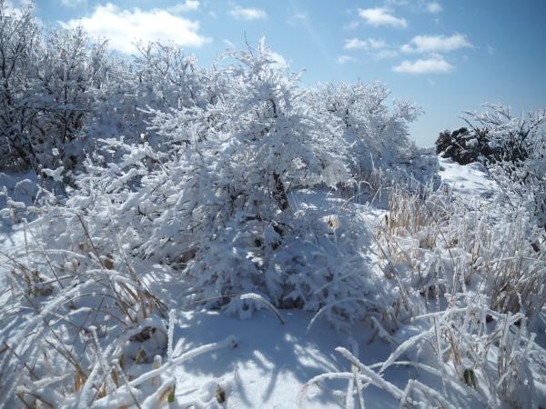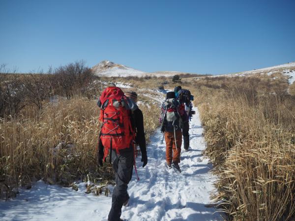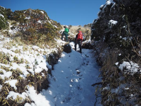 全体的に雪はあるものの今回はアイゼンを付けることは無かった。林道から山頂に向かう登りで滑ることは考えられるので不安な方は無理せずアイゼンを装着しよう。6本爪で対応できるだろう。