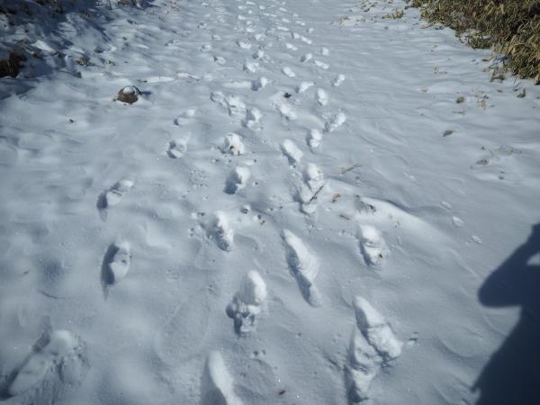 下りは午前中よりも雪が解け、登山道が緩くなっていた。スパッツのお陰でパンツの裾がドロドロになることは防げた。スパッツに感謝。