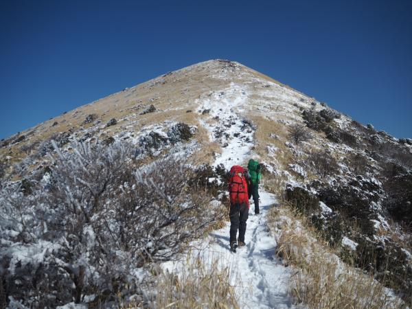 九重連山に比べるとマイナーなのかそれとも時期的なのか登山者も少なかった。すれ違ったのは山頂からの下りで会った一組だけ。つまり広い山頂は貸し切り状態。九重を眺めながらのご飯は格別。ついついボケッ~としてしまう。