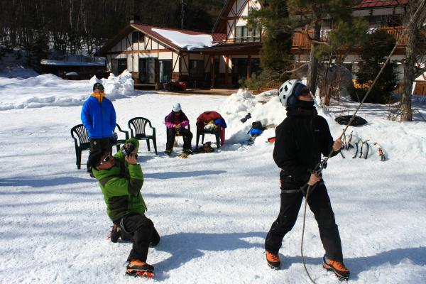 岩根山荘にお邪魔いたしまして、アイスクライミングの知識強化を図りました。
