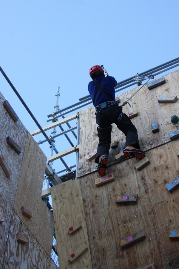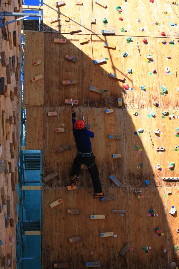 今回は人工で作られたボードにホールドを付けて、そこを登りました。