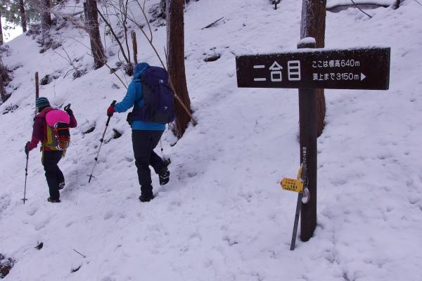 冬道直登ルートからは傾斜がきつくなるので6本爪以上が良く効きます。