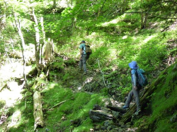 無双洞~和佐又キャンプ場は、クサリを中心とした急登があり山行後半ですが気が抜けません。