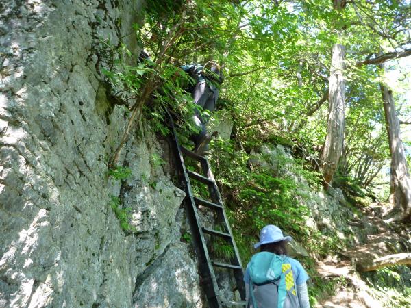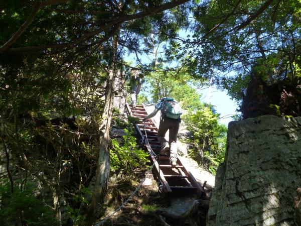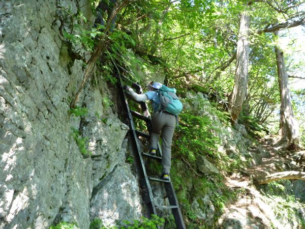 はしご、クサリ場が多く雨天時や降雨後は特に足場に注意下さい。