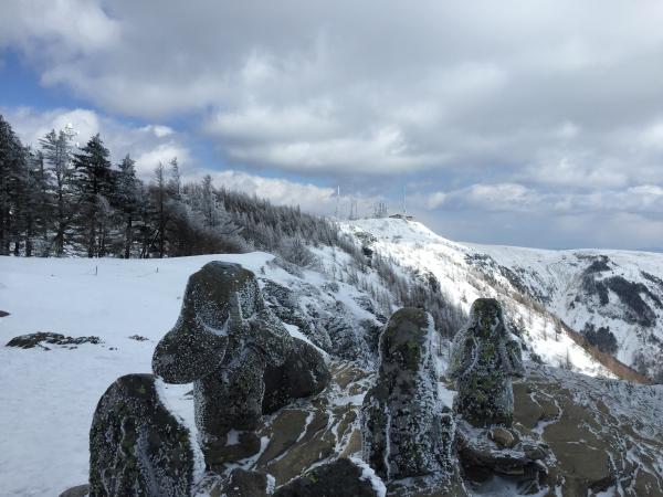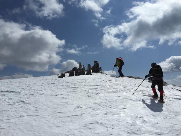 最後の道標から先は急な登りと強風にさらされます。下山の為に10本以上のアイゼンが必要です。