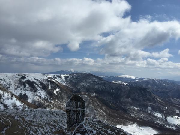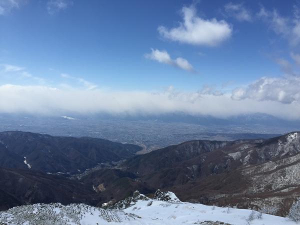山頂からは松本平が一望できます。残念ながら北アルプスたちは見えませんでしたが、