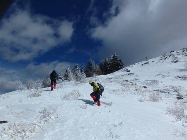 つぼ足で山頂へ向かいます。あ~、わかんって便利なんだろうな~。