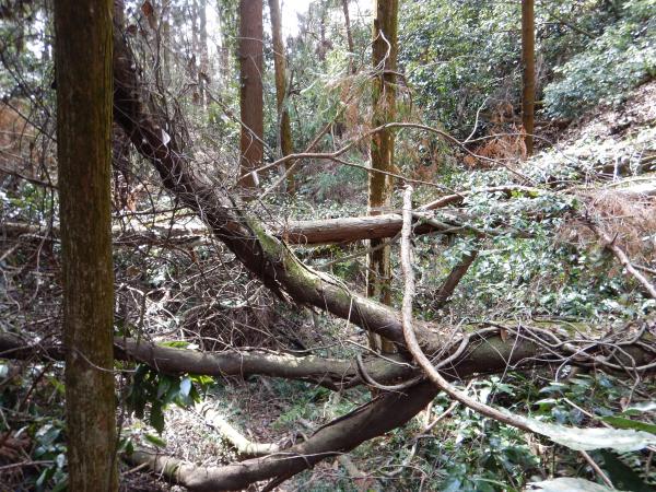 石山の池を目指すルートは尾根道と沢道がありますが、沢道は倒木などで荒れていました。尾根道の方が分かり易く、無難です。