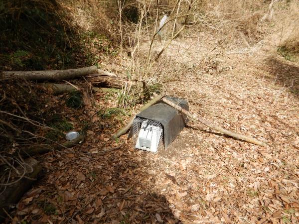 アライグマやハクビシンなどの外来生物捕獲用の罠です。触らないようにしましょう