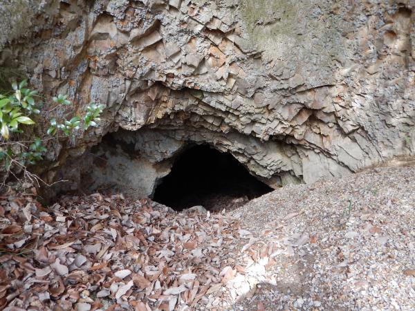途中にある防空壕跡です。危険なので、中には入らないようにしましょう
